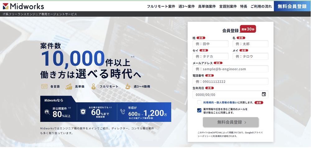 midworksは、福利厚生充実のフリーランス転身サイトです。