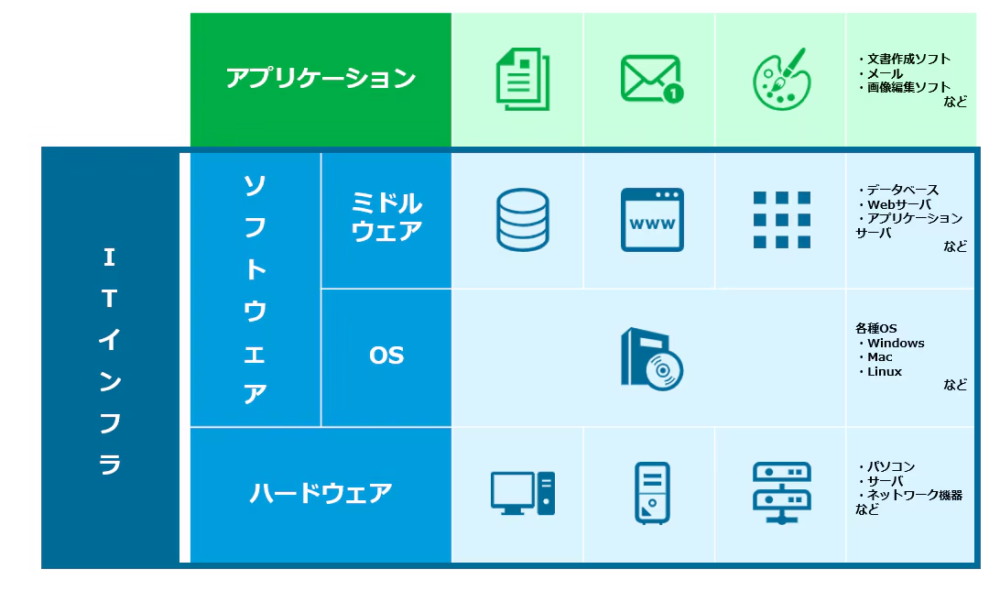 ネットワーク・データベース・サーバー・クラウドなどの「ITインフラ」を安定稼働させるのが、インフラエンジニアの役割となります。