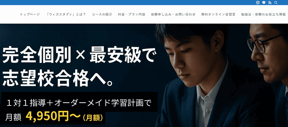 勉強計画と学習管理が安い料金で!オンライン個別指導塾「ウィズスタディ」は、月々9,800円〜という安さで中学生・高校生の受験指導を行っています。また、【2025年最新版】オンライン大学受験コーチング塾おすすめ人気ランキング9選という記事もオススメです。