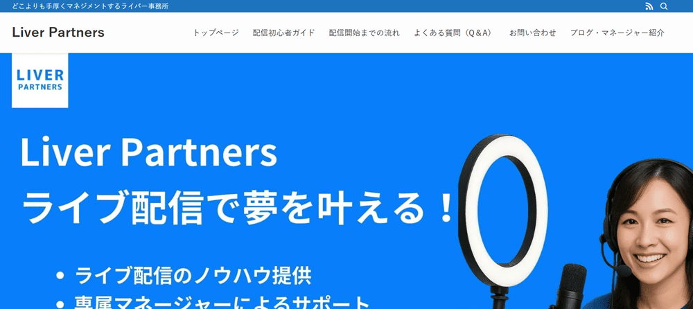 ライバーマネジメント事務所「ライバーパートナーズ」は、ライバーの願いを形にするという理念のもと、手厚いマネジメントと高い報酬還元率が特徴のライバー事務所となっております。